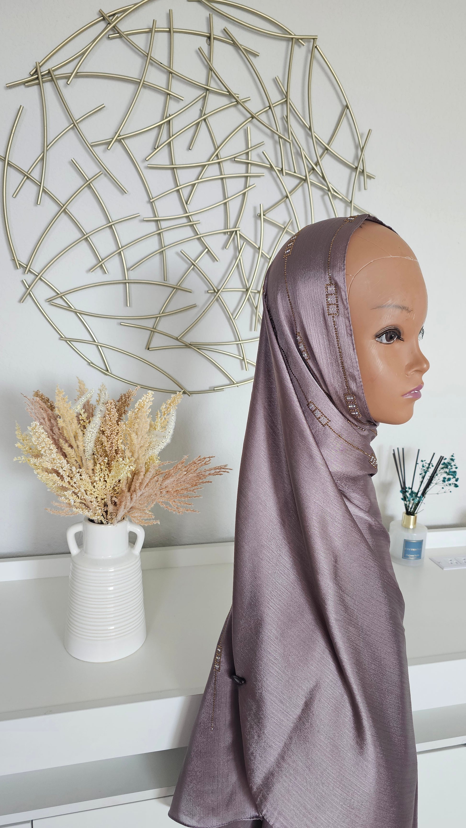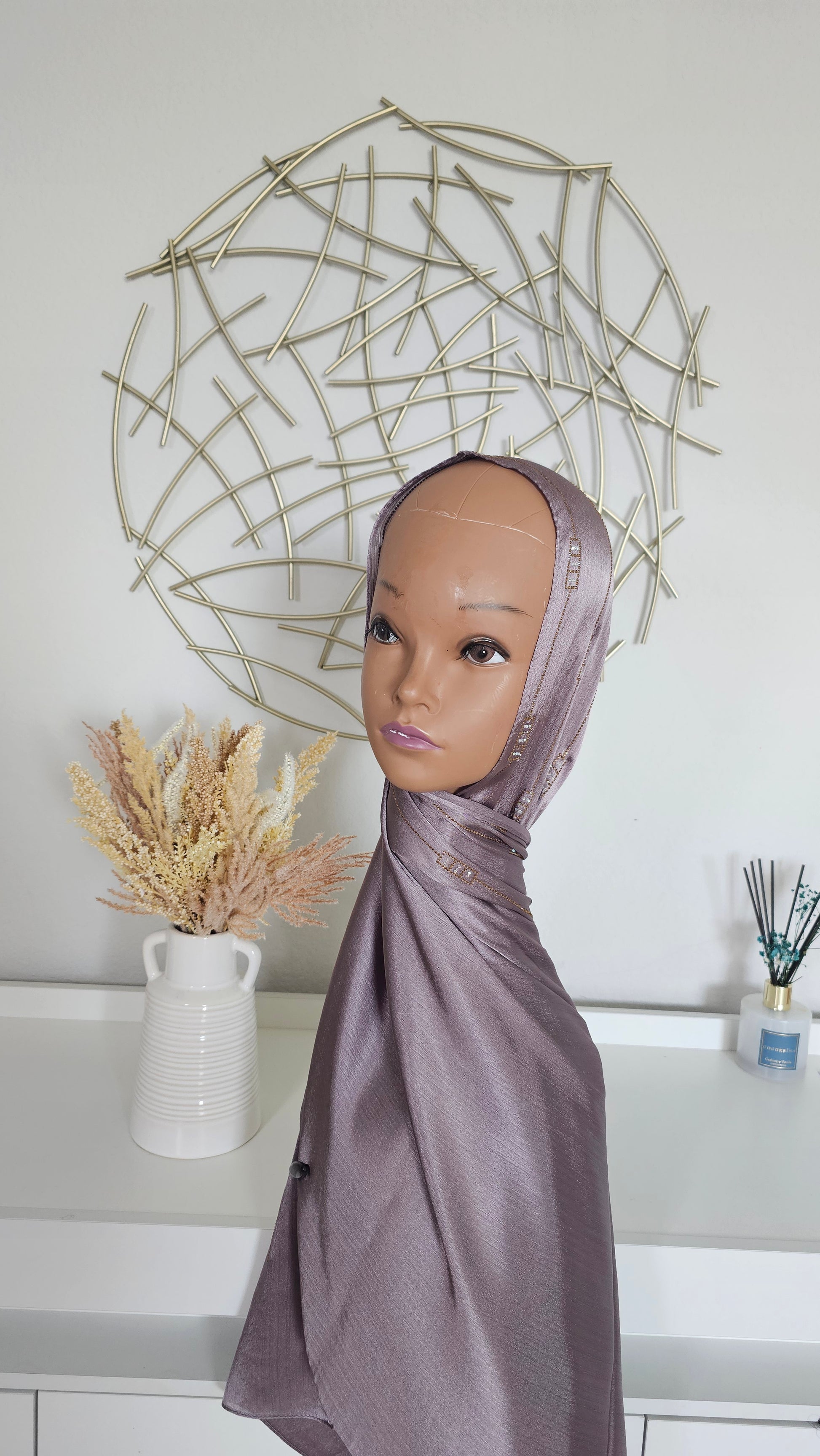 The Midnight Elegance Hijab embodies sophistication and grace with its rich deep navy blue hue. Crafted from a lightweight, semi-sheer fabric, it drapes effortlessly, offering both comfort and style. Subtle golden geometric accents add a touch of refinement, making it perfect for both everyday wear and special occasions. Its smooth texture and elegant flow create a timeless look that complements any outfit with understated luxury.